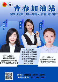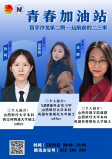 为进一步提升学院国际化水平和毕业生深造率,中文成人网 依托学院团委“青春加油站”品牌活动,于5月28日、29日通过线上形式举办了留学沙龙。本次沙龙邀请了在悉尼大学获得硕士学位的吴思粤、在剑桥大学获得博士学位的陶媛、在香港城市大学获得硕士学位解晶晶、在布里斯托大学获得硕士学位的田欣悦和王晔、就读于西交利物浦大学硕士研究生孙柯6位校友进行留学经分享。学院青年教师和部分同学参加。