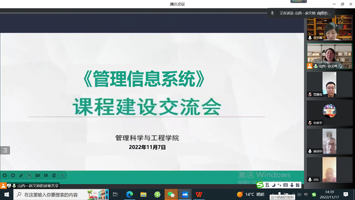 组织召开《管理信息系统》课程建设线上交流会。会议特邀智慧树课程顾问赵文婷老师和技术指导谭灏亮参加,会议由课程负责人邱玉霞老师主持,学院教学副院长荆树伟,课程团队成员宋俊平、张红兵和曲国华等老师参加会议。