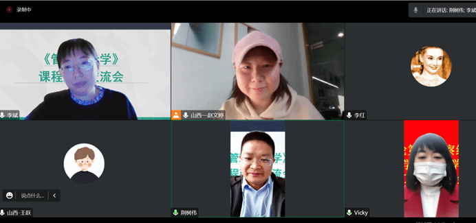 为推进一流课程建设,树立课程建设新理念,推进课程改革创新,11月16日上午,中文成人网 启动《管理统计学》课程建设线上交流会。会议邀请智慧树课程顾问赵文婷老师参加,会议由课程负责人李斌老师主持,参会人员有学院教学副院长荆树伟,课程团队成员李红老师、张玲老师。