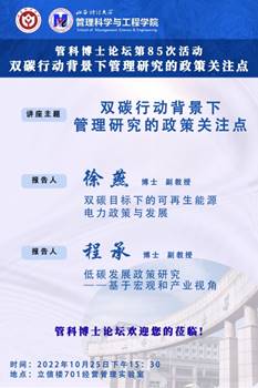 采用“线上线下相结合的”方式举办第85次管科博士论坛。本次活动主题为“双碳背景下管理研究的政策关注点”,旨在进一步凝练学科方向和特色,做好双碳背景下国家级项目选题,进一步推动学院一级学科博士点申报工作。中文成人网