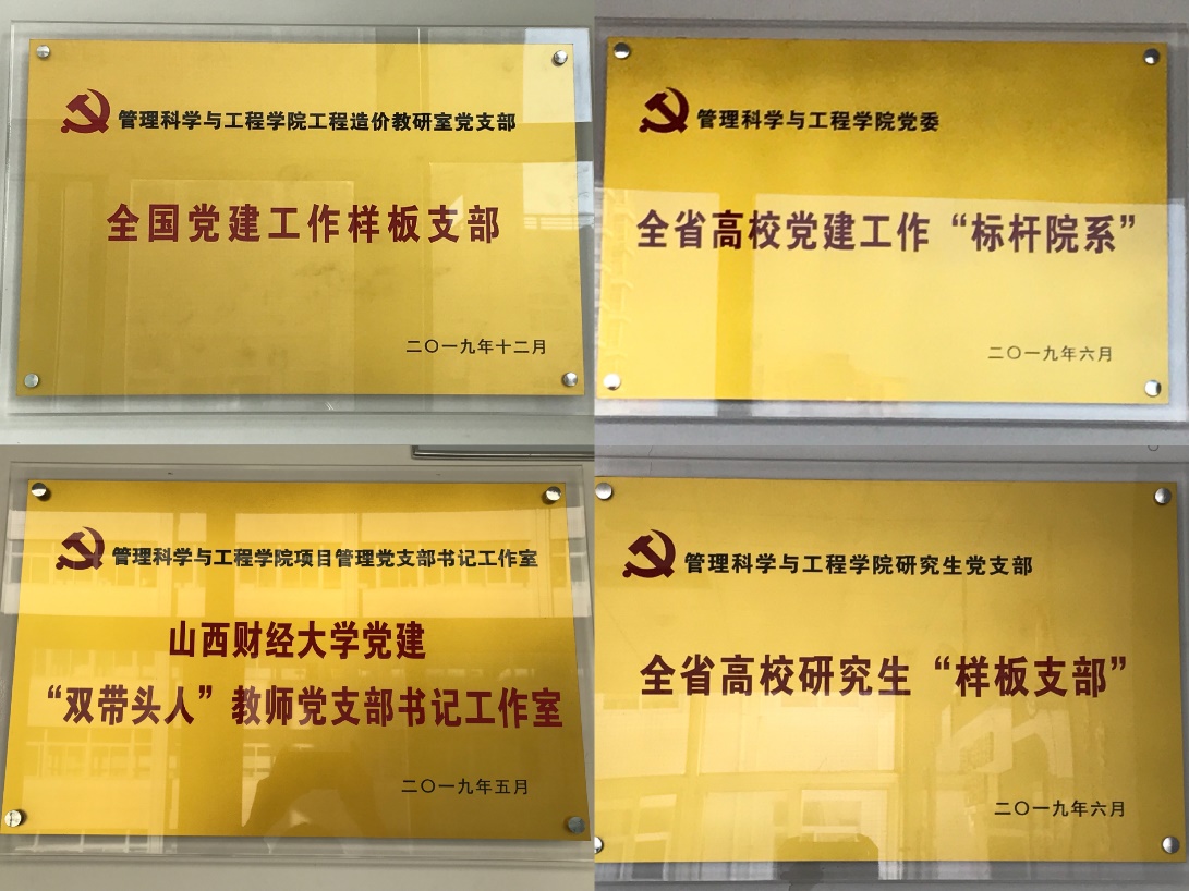 学院党委以立德树人为目标,履行政治和服务功能,提供完善的领导运行机制、高素质的骨干队伍和配套的制度体系三大保障,打造“四个精品工程”,服务“五大载体”,通过“六个抓手”,夯实党建基础,让党建工作“活”起来。学院2019年获批“全省高校党建工作标杆院系”、工程造价党支部获“全国党建样板党支部”、研究生党支部获“全省高校研究生样板支部”,研究生支部案例入选“山西省高校党建创新案例汇编”,赵华平获校级“双带头人支部书记工作室”,支明泽获校级党建重点课题,学院获组织、科研、服务育人特色品牌项目。