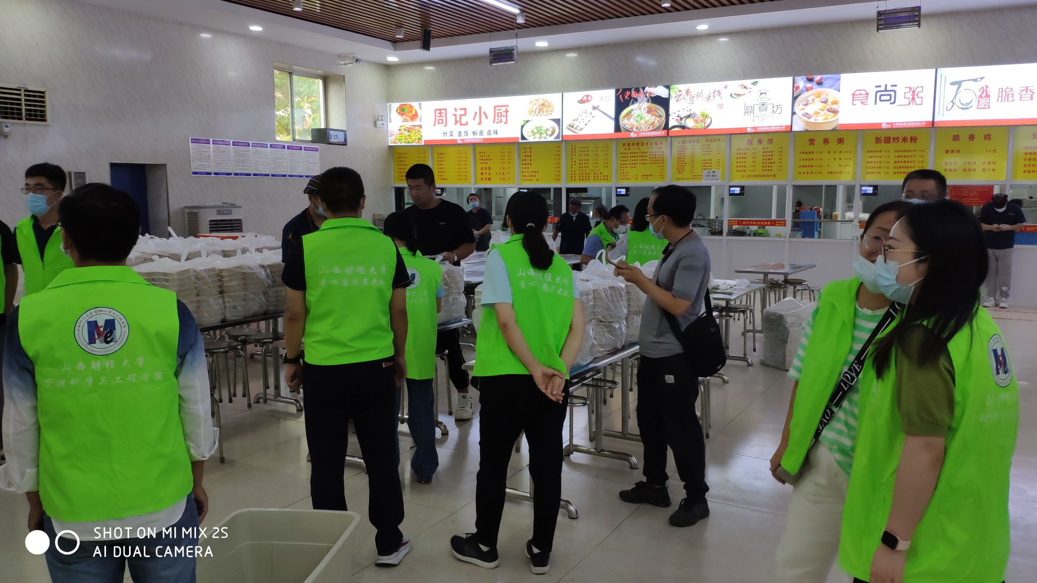 二级教授孙国强老师在主动报名志愿者时说道。“我是一名新入职的年轻教师,深感荣幸,这次的志愿服务工作给了我一个近距离接触学生、服务学生的机会。看着积极报名的各位老师,充分体会到了管科的凝聚力。”青年教师李腾送完餐后感慨道。