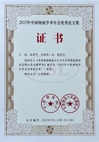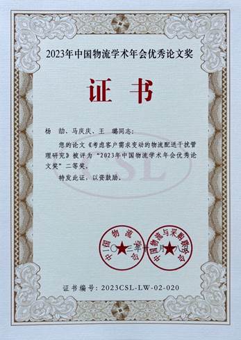 王迪、杨劼老师分别提交了题为《考虑客户需求变动的物流配送干扰管理研究》《考虑数据赋能与公平关切的物流服务供应链应急决策研究》的学术论文,两位老师同时斩获论文二等奖;白鹏锐老师提交了与物流工程与管理专业硕士研究生共同完成的“两业协同与区域经济关系“课题研究报告并获得课题研究三等奖。自2020年以来,中文成人网