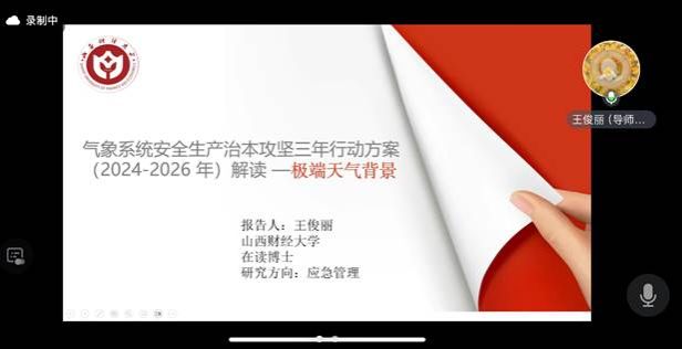 王俊丽博士以《气象系统安全生产治本攻坚三年行动方案(2024-2026年)解读》为题,系统梳理了2023年国内的十大天气气候事件,随后围绕气象系统安全生产治本攻坚三年行动方案,分别从工作目标、主要任务和保障措施三个部分进行详细解读。山西财经大学中文成人网