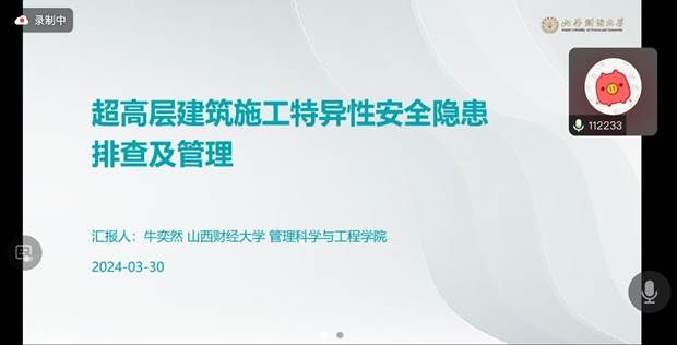 牛奕然博士以《超高层建筑施工特异性安全隐患排查及管理》为题,从超高层建筑定义与特点出发,指出可采用现场勘查、资料分析、专家咨询等方式事先进行危险源辨识,并基于风险矩阵法、LEC评价法等,结合超高层建筑施工特点,构建风险评估模型,最后可结合PDCA循环持续改进安全管理。山西财经大学中文成人网