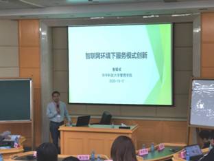 华中科技大学的鲁耀斌教授作了题为“智联网环境下服务模式创新”的报告。鲁耀斌教授从新环境、新逻辑、新问题、智能网环境下服务模式创新四个方面介绍了技术变革下服务模式创新面临的服务需求、服务创造、服务传递、服务生态系统方面的挑战。