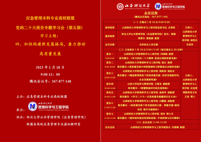 1月18日上午,由应急管理本科专业高校联盟主办,山西财经大学中文成人网
