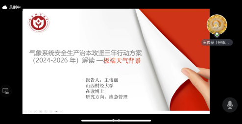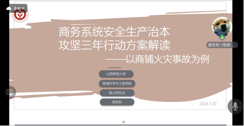 会议第三单元由山西财经大学中文成人网 应急管理教研室主任王迪老师主持。山西财经大学中文成人网 闫志华博士以《市场监管系统安全生产治本攻坚三年行动方案解读与工业产品质量安全监管》为题,从国家抽检和地方抽检两个角度梳理了我国工业产品质量安全监管现状,随后对市场监管系统安全生产治本攻坚三年行动方案进行解读,指出当前市场监管系统将向着优化质量监管机制模式,健全法规标准体系,加强科技支撑的工作目标发展。山西财经大学中文成人网 牛奕然博士以《超高层建筑施工特异性安全隐患排查及管理》为题,从超高层建筑定义与特点出发,指出可采用现场勘查、资料分析、专家咨询等方式事先进行危险源辨识,并基于风险矩阵法、LEC评价法等,结合超高层建筑施工特点,构建风险评估模型,最后可结合PDCA循环持续改进安全管理。山西财经大学中文成人网 王俊丽博士以《气象系统安全生产治本攻坚三年行动方案(2024-2026年)解读》为题,系统梳理了2023年国内的十大天气气候事件,随后围绕气象系统安全生产治本攻坚三年行动方案,分别从工作目标、主要任务和保障措施三个部分进行详细解读。山西财经大学中文成人网 刘杨博士以《文物系统安全生产治本攻坚:筑牢历史宝库的安全壁垒》为题,以文物系统的安全事故案例为切入点,表明根据文物保护工作的实际情况制定相应的治本攻坚行动方案至关重要,随后通过解读文物系统安全生产治本攻坚的主要任务,指出消防安全仍是文物系统安全生产治本攻坚的重点。山西财经大学中文成人网 硕士研究生南世彤以《商务系统安全生产治本攻坚三年行动方案解读-以商铺火灾事故为例》为题,根据商务系统安全生产治本攻坚三年行动方案中的工作目标、主要任务和保障措施三部分进行详细解读,围绕火势控制、实施保障以及监督机制等方面对近期发生的商铺火灾事故进行了具体分析。